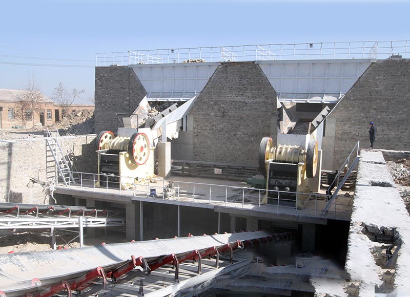 1.兩臺給料機分別給鄂式破碎機喂料,同時工作可以提高工作效率,鄂式破碎機出來的物料需要進過振動篩篩分,不符合物料大小的物料再次進入鄂式破碎機進行破碎,處理后的物料為200mm左右