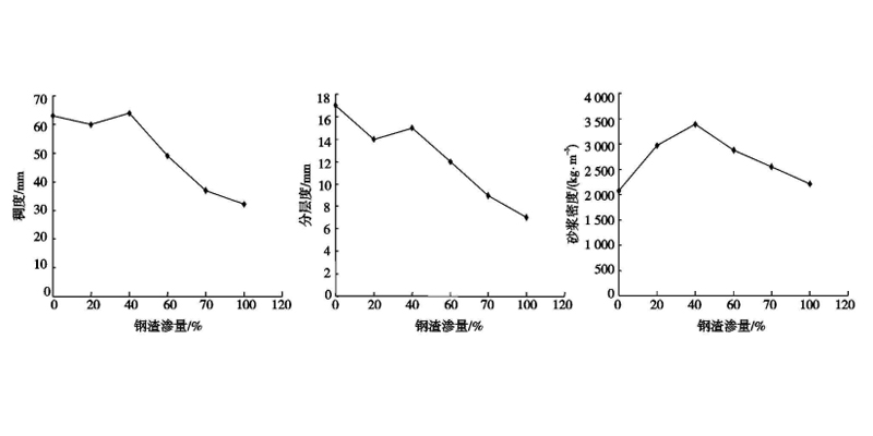 1、經過調查研究顯示,鋼渣的稠度密度等隨著鋼渣含量的不斷增加呈現先增加后較少的趨勢,也就是說鋼渣的含量并非越多越好,當鋼渣含量占砂漿總量的百分之四十時,砂漿的稠度密度為最高值,此時砂漿的性能更好且保水性更好。