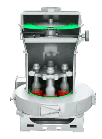 雷蒙磨為立式結(jié)構(gòu),設(shè)備下部有電機(jī)帶動(dòng)內(nèi)部磨輥和磨盤不斷旋轉(zhuǎn)來將物料粉碎,粉碎后在進(jìn)風(fēng)口將物料吹起并經(jīng)過分離器對粗細(xì)粉分離,之后的成品物料通過出風(fēng)口帶走收集起來,雷蒙磨分級(jí)的進(jìn)出料口的設(shè)計(jì)是比較科學(xué)的,也因此可以提高設(shè)備的生產(chǎn)效率。