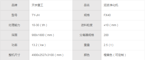 泥漿凈化器 / 技術參數