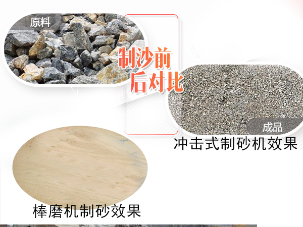 棒磨機的時產量為0.62-180噸,沖擊式制砂機時產量為70-585t/h,沖擊式制砂機生產效率更高。